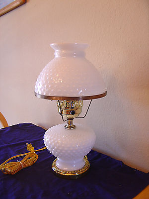 WHITE MILK GLASS HOBNAIL TABLE LAMP W/MATCHING SHADE