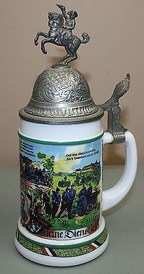 Old German Regimental Military Cavalry BMF Bierseidel Tankard Stein Milk Glass