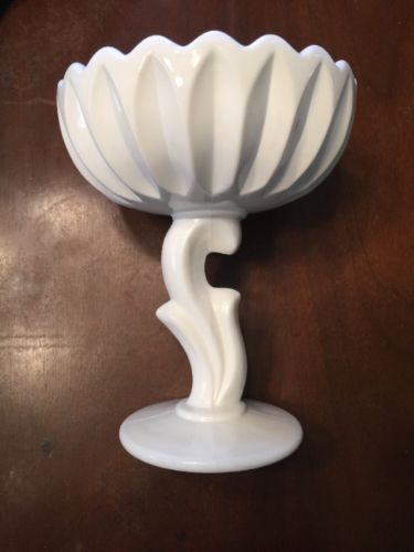 WHITE MILK GLASS LOTUS COMPOTE CANDY DISH