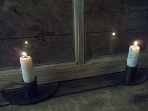 Primitive reproduction tin window sill candle holders~faux tallow taper stubs