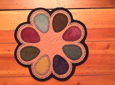 PRIM WOOL AND WOOL FELT PENNY RUG CANDLE MAT TABLE RUNNER COLORFUL EASTER EGGS