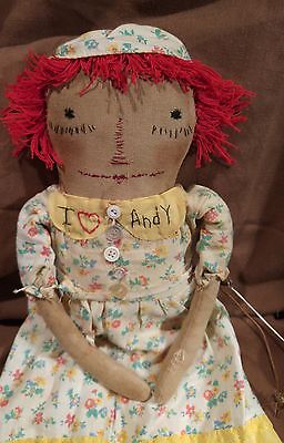 Primitive Folk Art Doll OOAK Raggedy Ann Mustard Seed Fat Hen Farm Cloth Calico