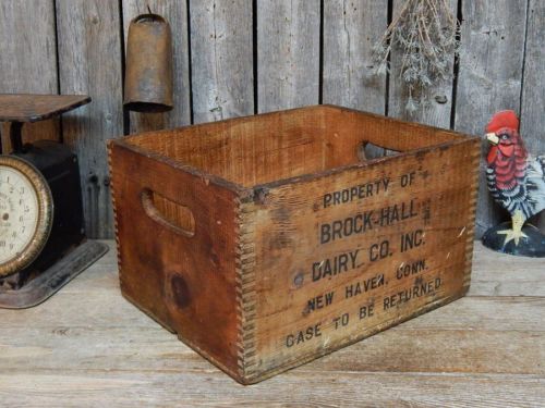 Title (ebay affiliate link): Old Vintage Wood Milk Dairy Crate BROCK-HALL Farm New Haven CT