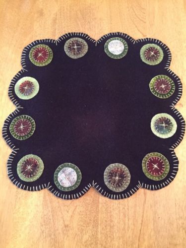 Title (ebay affiliate link): Primitive WOOL Applique Penny Rug ~ Square ~ Wine ~ Handmade ~ Folk Art