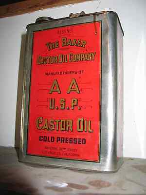 Title (ebay affiliate link): Baker AA U.S.P. Castor Oil 8 lb. can Bayonne Los Angeles Vintage Decorative