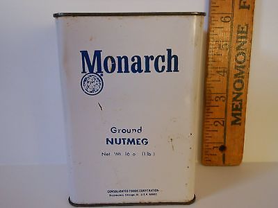 Title (ebay affiliate link): Vintage Monarch brand Ground Nutmeg spice tin/Consolidated Foods Corp.