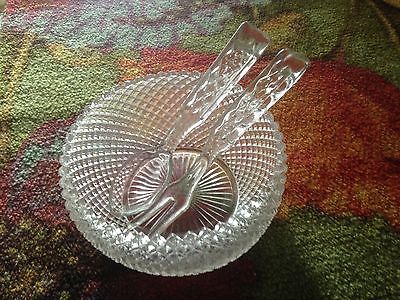 Miss America Crystal Curved Top Rim Serving Bowl W/ glass fork & spoon