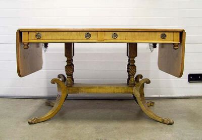 Title (ebay affiliate link): Antique Satinwood Large Drop Leaf Table Carved Paw Feet