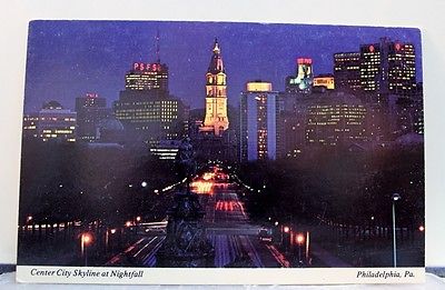 Title (ebay affiliate link): Pennsylvania PA Philadelphia Center Skyline Night Fall Postcard Old Vintage Card