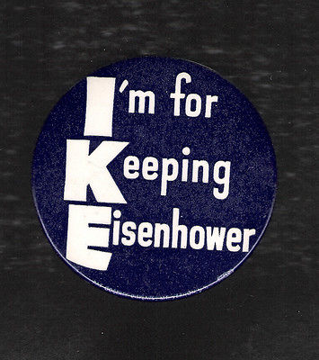 Title (ebay affiliate link): original large IKE I'm for Keeping EISENHOWER celluloid campaign button
