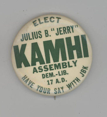 Title (ebay affiliate link): 1965 JULIUS JERRY KAMHI New York Assembly POLITICAL Pin BUTTON Pinback BADGE NY