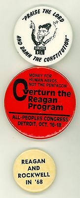 Title (ebay affiliate link): 3 Vintage 1968 80s President Ronald Reagan Political Cause Pinback Buttons