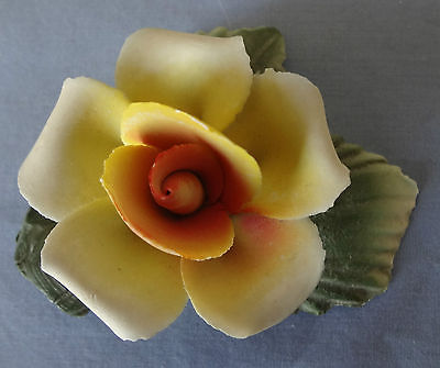 YELLOW CAPODIMONTE PORCELAIN ROSE FLOWER