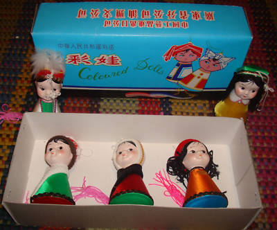 VINTAGE CHINESE 5 COLOURED DOLLS ORNAMENTS DOLL CRAFTS