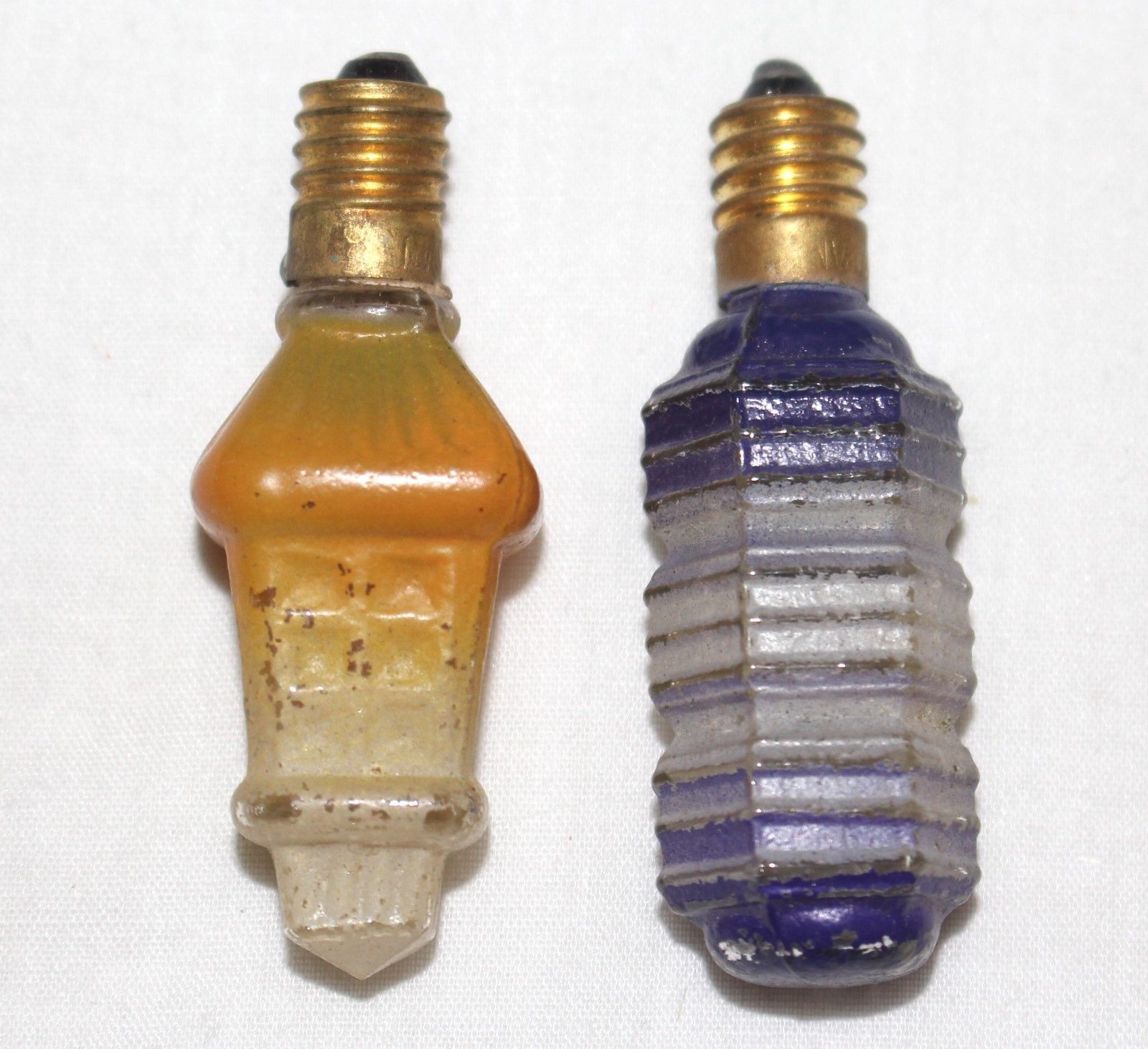 Title (ebay affiliate link): Two unique Lantern shaped Xmas Tree Lamps. Yellow, Blue. C-6 Miniature. Work.