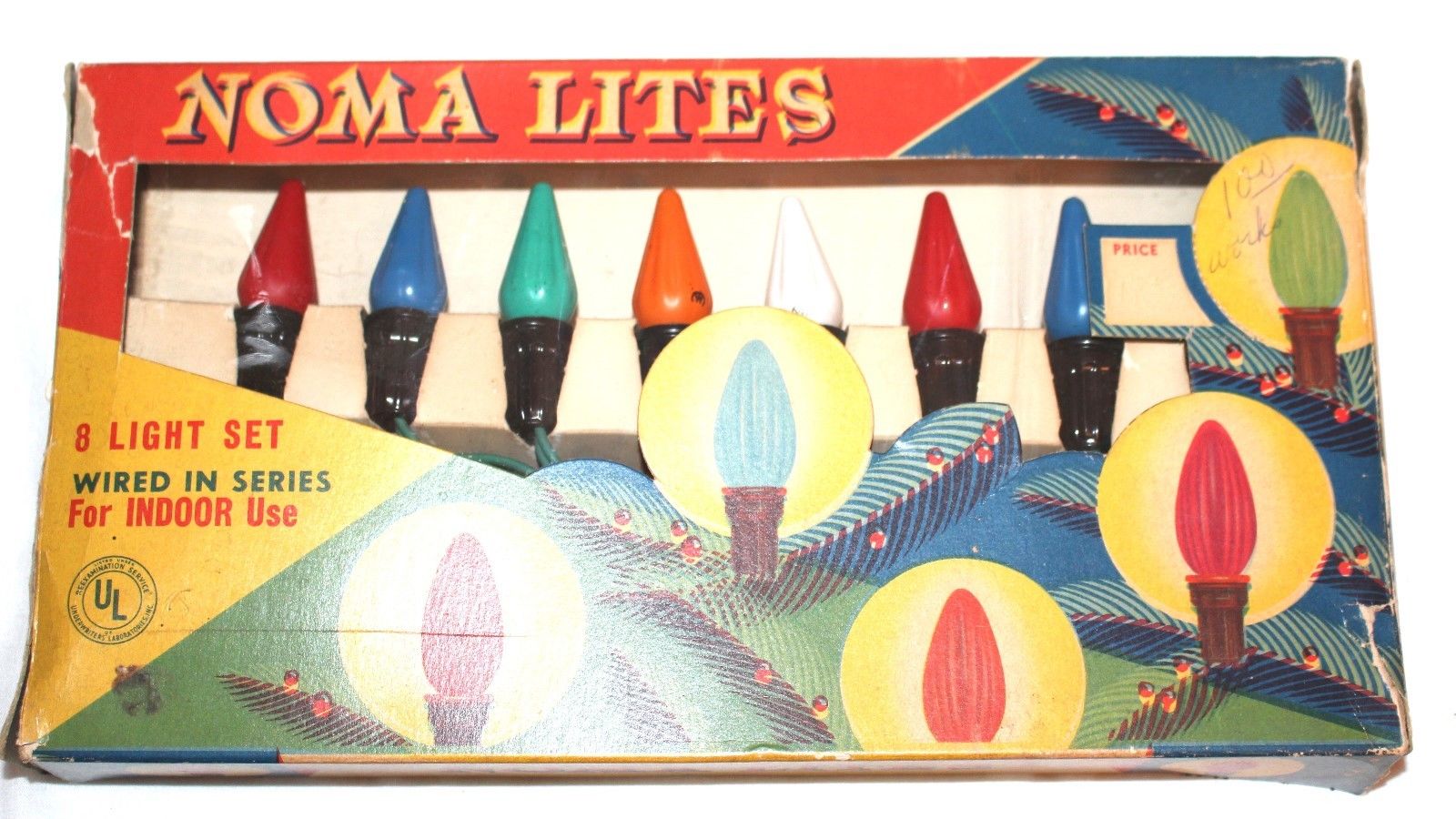 Title (ebay affiliate link): Boxed Set of Eight NOMA C-6 Miniature Base Xmas Tree Lights. Works.