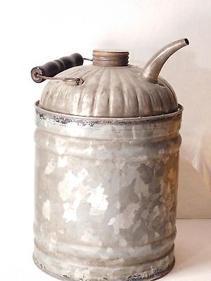 Primitive oil or kerosene can,galvanized metal,wood bail handle,spout,12 inch