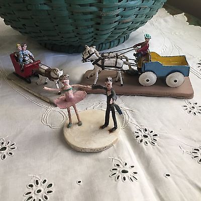 Antique Folk Art Figures Miniature Horse Buggy Dancing Couple Vintage Dated 1914