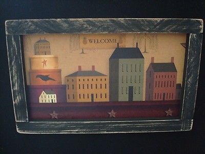 Title (ebay affiliate link): Primitive Country Print *WELCOME* w/ Saltbox Houses in black frame 10 x 6 1/2
