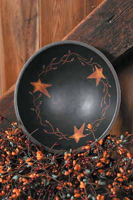 Country Primitive Wooden Painted Berry Vine Folk Star & Berries Bowl