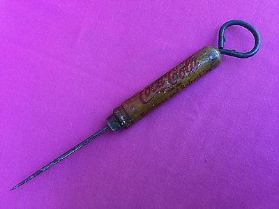 OLD VINTAGE COCA COLA ICE PICK & BOTTLE OPENER WOOD HANDLE ADVERTISING 10-1/4"