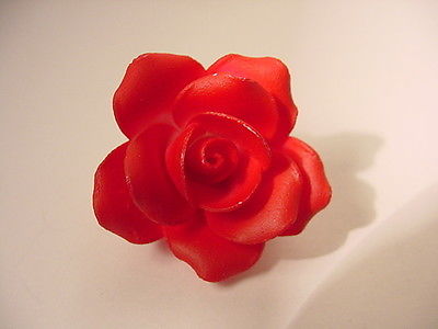 VINTAGE ITALY CAPODIMONTE PORCELAIN RICH RED ROSE FLOWER PIN BROOCH