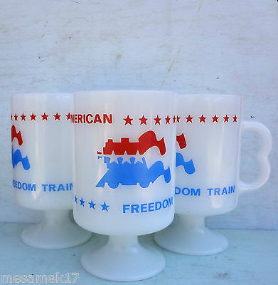 Vintage American Freedom Train Milk Glass Set of 3 Coffee Tea Mug Pedestal White
