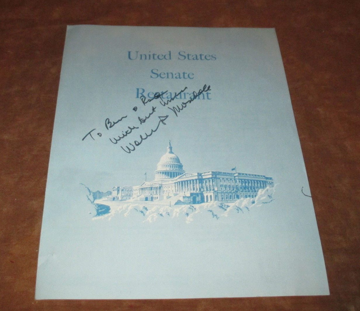 Title (ebay affiliate link): VINTAGE U.S. SENATE RESTAURANT MENU 1967 - WALTER MONDALE AUTOGRAPH