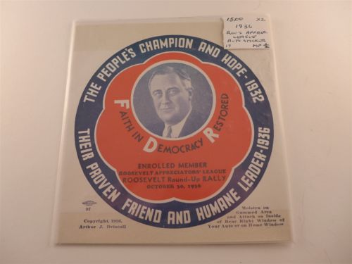 Title (ebay affiliate link): 1936 Roosevelt Appreciator's League Window Sticker