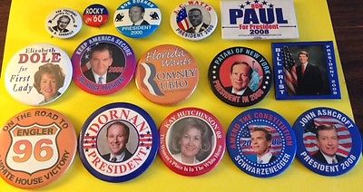 Title (ebay affiliate link): Lot of 15 Republican Hopefuls for President Pinback Buttons