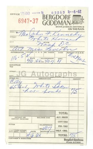 Title (ebay affiliate link): Jaqueline Kennedy - "Bergdore Goodman, New York" - White House Era Receipt - JFK