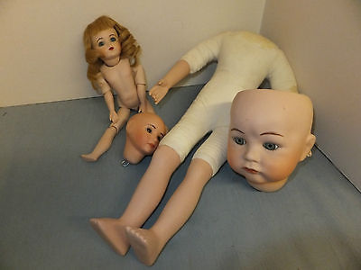 Title (ebay affiliate link): BISQUE ANTIQUE REPRODUCTION CLOTH BODY 2 HEADS 1 DOLL LOT NEED TLC