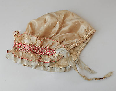 Antique Baby Doll Bonnet Smocking Ruffles Vintage