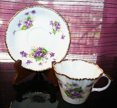 Tea Cup Saucer Salisbury bone china tea cup saucer set Violets on white!