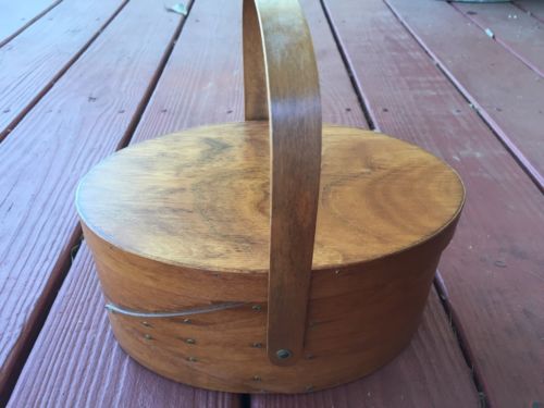 Title (ebay affiliate link): vintage Old Time Woodenware New Hampshire shaker bentwood Sewing Basket