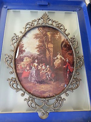 Vintage Oval Brass Picture Frame Ornate Made In Italy Convex Glass