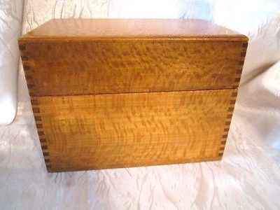 Title (ebay affiliate link): VNTG DOVETAIL CORNERS WOOD INDEX FILE 3"x5" CARD RECIPE BOX Quarter Sawn Grain