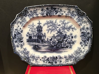 Staffordshire Transferware Chinoiserie Blue Transfer Meat Dish Platter 19th
