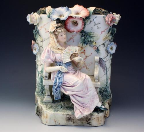 Title (ebay affiliate link): Large & Showy C1900 Italian Majolica Art Pottery Figural Centerpiece w/ Woman