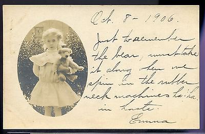 REAL PHOTO POSTCARD RPPC FLAG TEDDYBEAR PRETTY LITTLE GIRL W GLASSES CA 1910