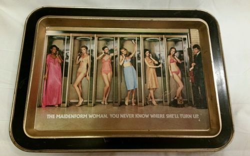 Title (ebay affiliate link): RARE VINTAGE MAIDENFORM WOMAN METAL ADVERTISING TRAY MID CENTURY RETRO 1960's