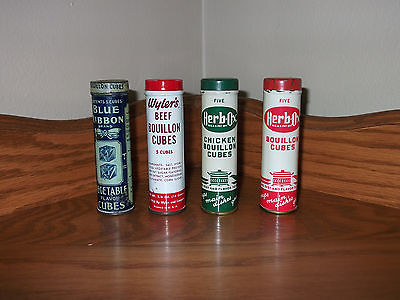 4 Old Vintage ( Herb-Ox, Wyler's, Blue Ribbon,) Bouillon Tins