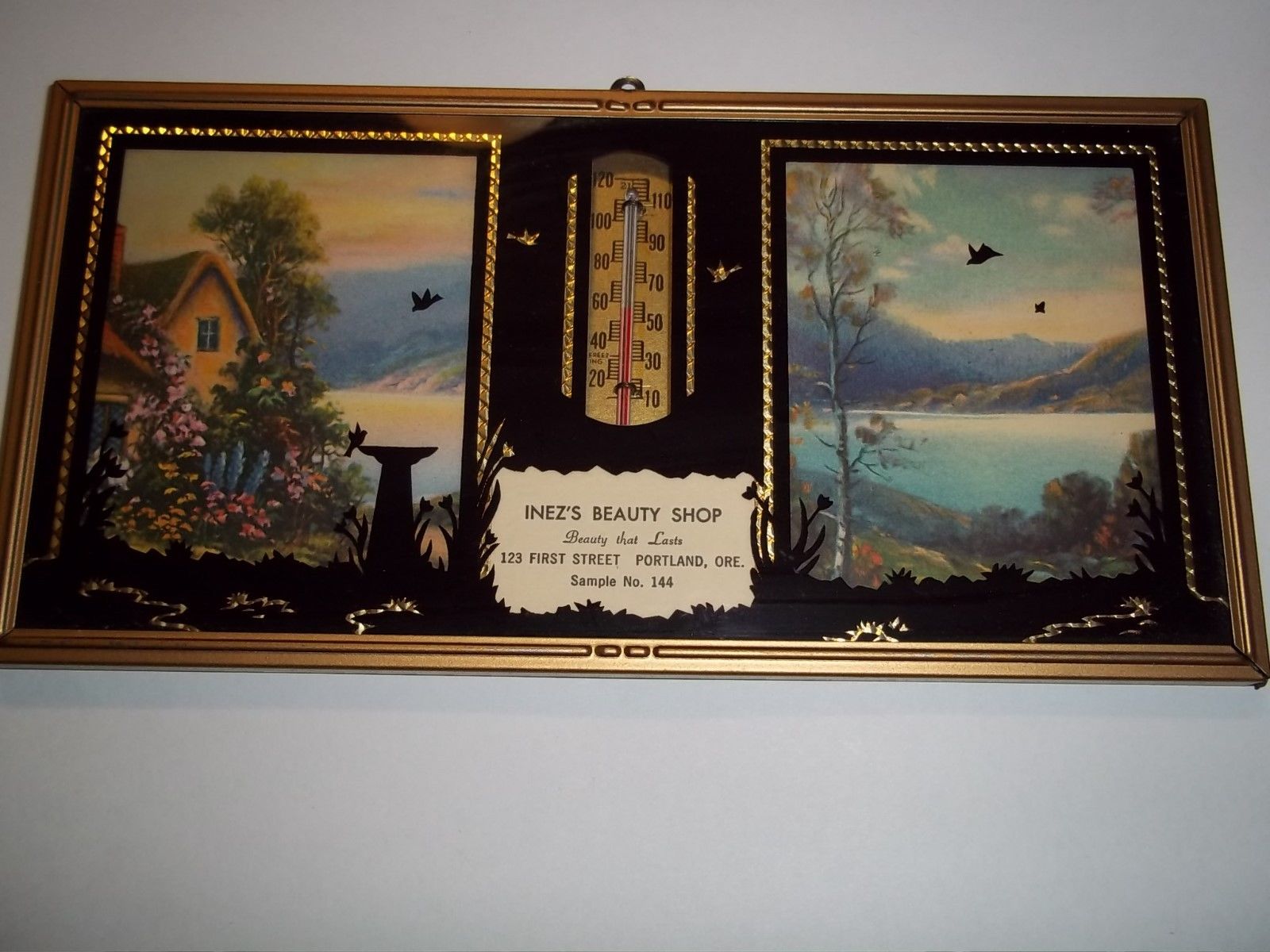 Title (ebay affiliate link): Vintage HOUSE, LAKE, MTS Advertising THERMOMETER, INES'S BEAUTY,CALENDAR ART 49