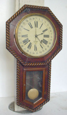Title (ebay affiliate link): 26" ANTIQUE TWIST OCTAGON SOLID ELM CALENDAR WALL CLOCK