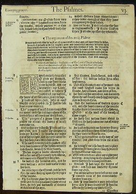 Title (ebay affiliate link): 1568 1ST EDITION BISHOPS FOLIO BIBLE LEAF/RARE/POPULAR PSALM 18!