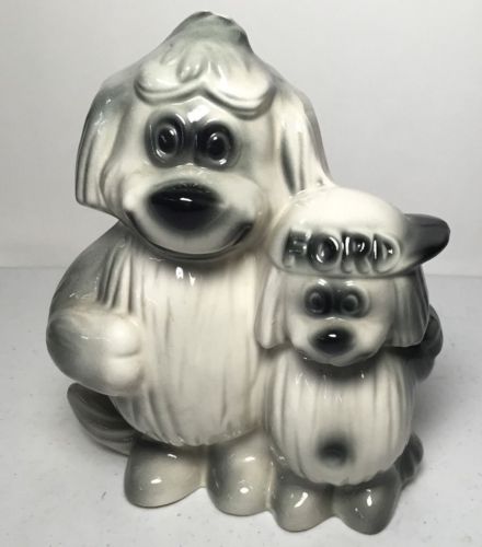 Title (ebay affiliate link): Vtg 50s Ford Motor Co Ceramic Shaggy Dog & Son Piggy Bank Dealer Promo *Hot Rod*