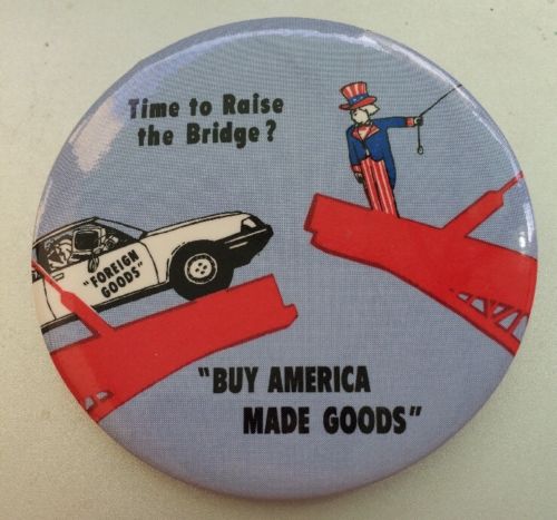 Title (ebay affiliate link): Time to Raise the Bridge? Buy America Made Goods Uncle Sam Button Pin