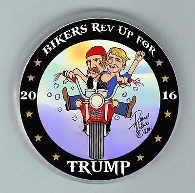 Title (ebay affiliate link): 3" BIKERS Rev Up for Donald TRUMP 2016 NEW 3" metal BUTTON Artist Sig president