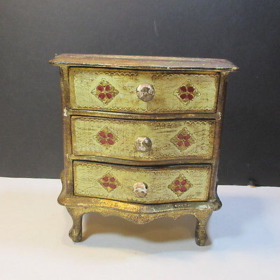 Vintage Miniature 3 Drawer Bow Front Dresser Italy Dollhouse / Jewelry Box