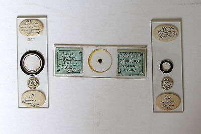 3 x Early INSECT MICROSCOPE SLIDES: BOURGOGNE & Pair WATSON